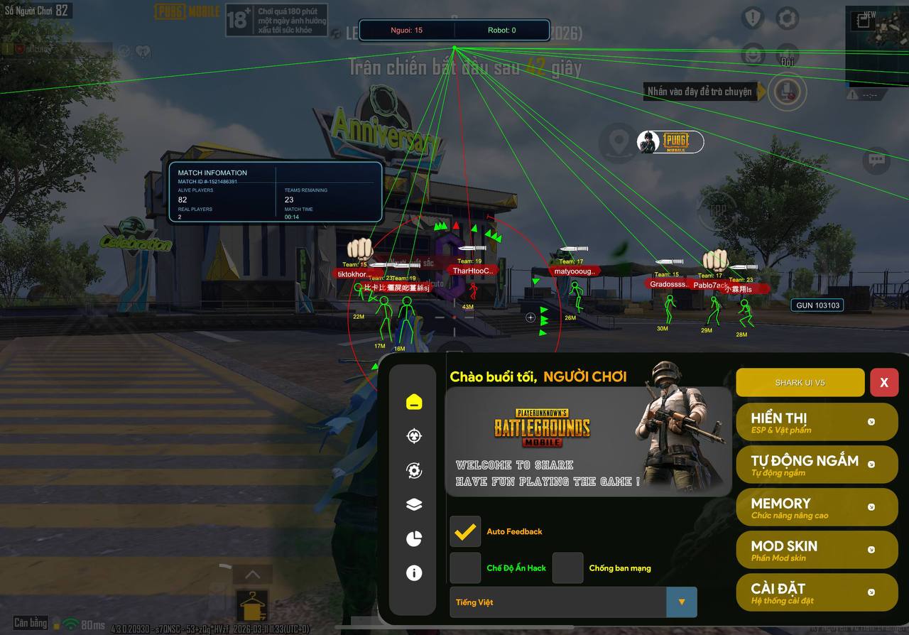 Pubg Shark Update 4.3 18/3 [ không bật modskin dễ văng ]